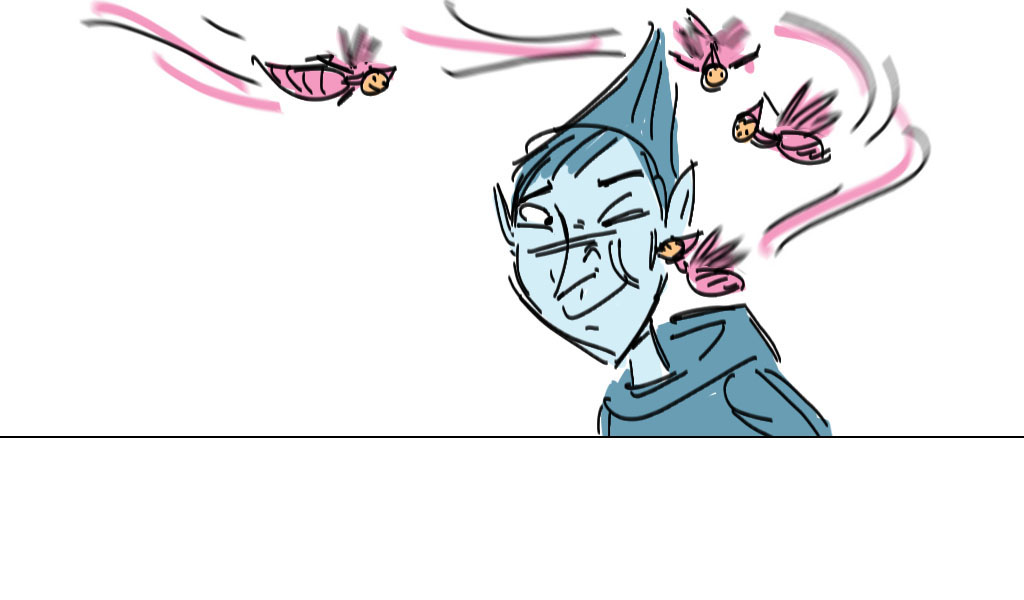Show, don't tell. It's one of the cardinal rules of movie making that's often overlooked. An early sequence that only made it to the thumbnail stage before it was decided that the events should happen off screen, was Pitch, the Boogeyman attacking the Easter Bunny's kingdom. In this version that I wrote and boarded, Pitch makes himself known to the Guardians for the first time. This sequence also served as Bunny and North's introductions into the film. I think any version of the battle would have been great to see. Then again, maybe Star Wars famous Death Star battle sequence would have been more exciting had the characters just talked about how awesome it was after the fact. The scene starts as Bunny's minions have mistakenly taken the Tooth Fairy prisoner. Here's part one.
